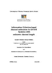 This thesis adresses the problem of channel estimation in OFDM systemswhen the channel length is unknown. This problem includes the joint estimationof the channel and carrier frequency oset (CFO) in the presence ofphase noise (PHN) which correspond to phase distortions in the form of anunknown deterministic variable and a random variable, respectively. Channelnoise variance is also estimated and phase noise bandwidth is assummedknown as well as the transmitted signal.The joint estimation of the channel impulse response (CIR) and the frequencyoset is carried out using Maximum Likelihood estimation. TheExpectation-Maximization (EM) algorithm is implemented due to the presenceof PHN as hidden variable. In the Expectation step, given that PHNhas a nonlinear relation with the output signal, Extended Kalman Filter(EKF) is used as nonlinear lter to calculate the expected posterior distributionof the PHN, whilst the maximization step is carried out by concentratingthe cost in carrier frequency oset, and obtaining the channelestimates in closed form.Akaike's Information Criterion is used as a model selection technique tosolve channel length estimation. The implementation is carried out by usingthree approaches: one direct approach and two others formulated as a regularizedoptimization problem. One of the regularized problems correpondsto the utilization of the `0-(pseudo)norm, whilst the other corresponds tothe utilization of an approximation of the `0-(pseudo)norm.The three approaches are compared considering not only the accuracy ofthe estimation, but the computational load required, in terms of CPU time.EKF was chosen instead of other nonlinear techniques (such as SequentialMonte Carlo techniques) to ensure a fair comparison among dierent AICapproaches.For completeness of the presentation, in this thesis we study the impactof dierent levels of SNR on the overall parameter estimation problem, whenusing full training signals via numerical simulations.