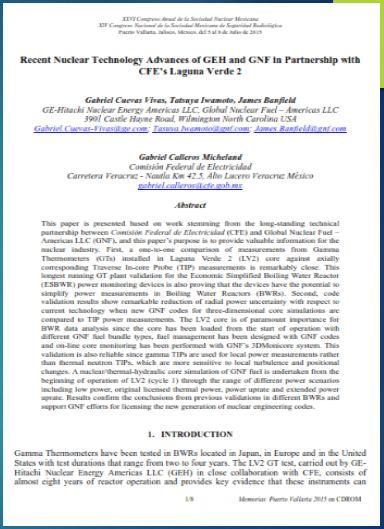 Artículo presentado en el XXVI Congreso Anual de la Sociedad Nuclear Mexicana. XIV Congreso Nacional de la Sociedad Mexicana de Seguridad Radiológica. Puerto Vallarta, Jalisco, México, del 5 al 8 de Julio de 2015.